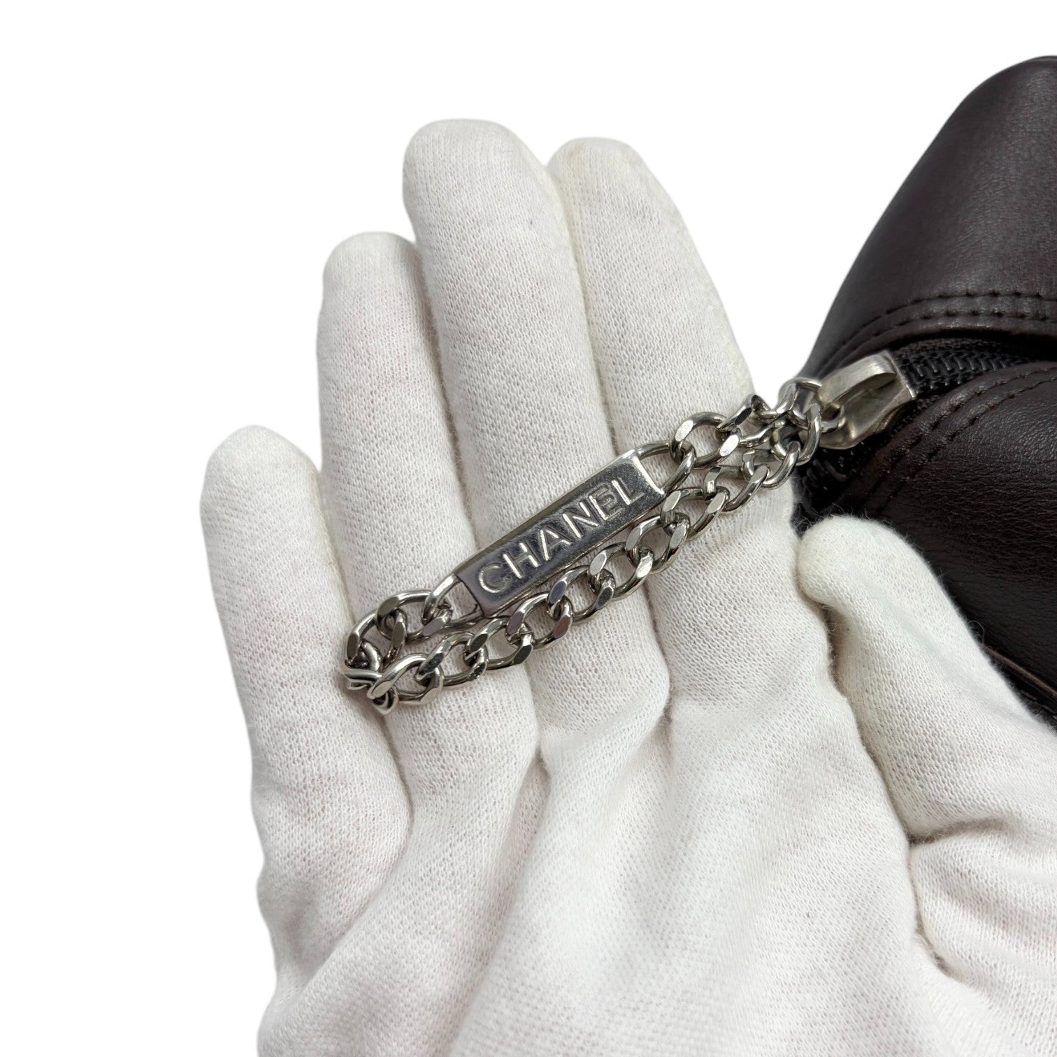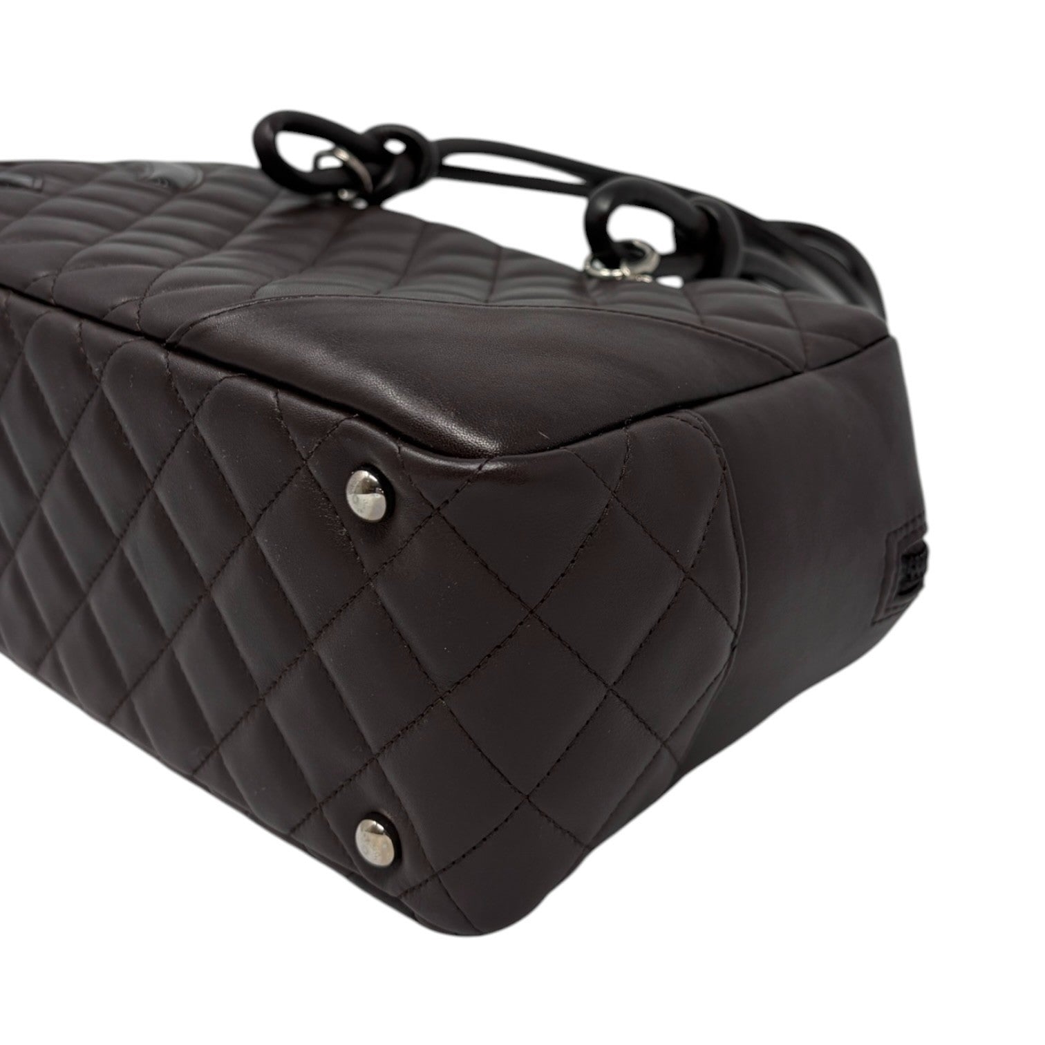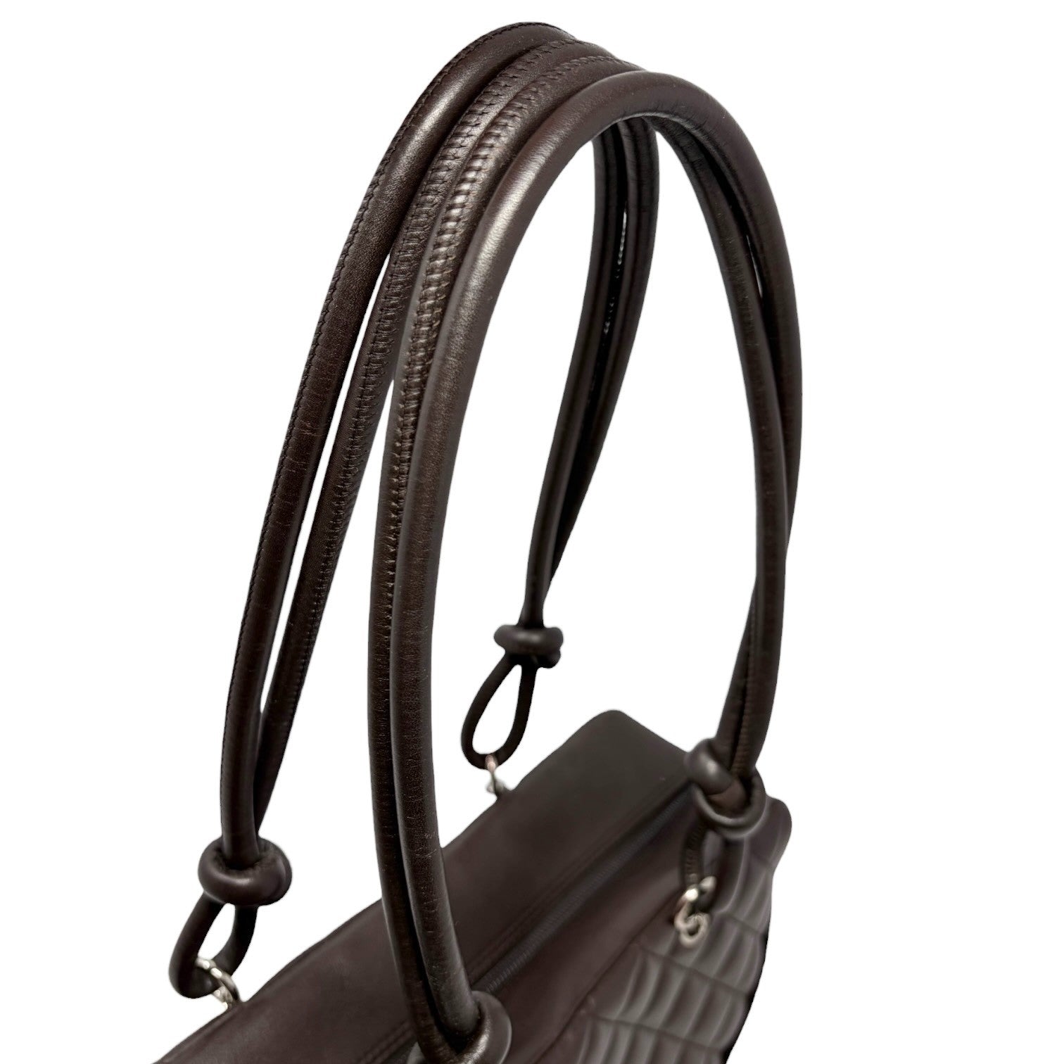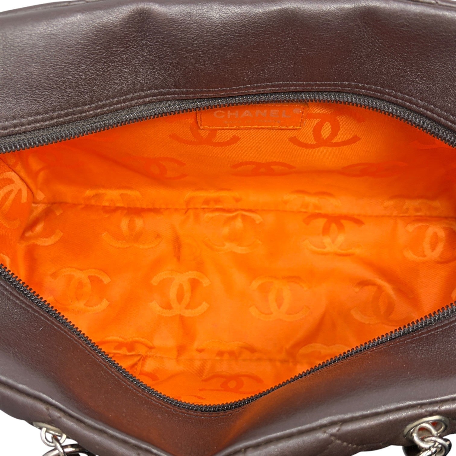 CHANEL Vintage Cambon Line CC Logo Quilted Shoulder Bag Brown Silver Leather
