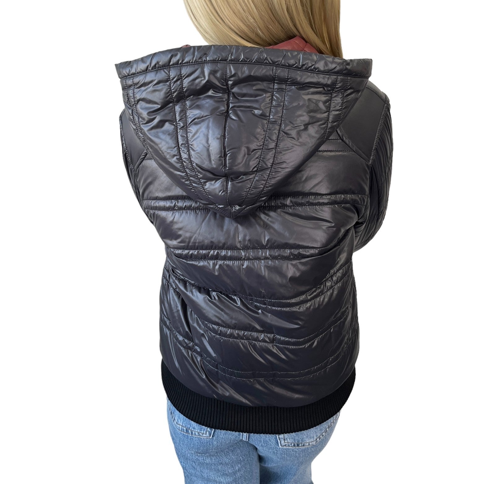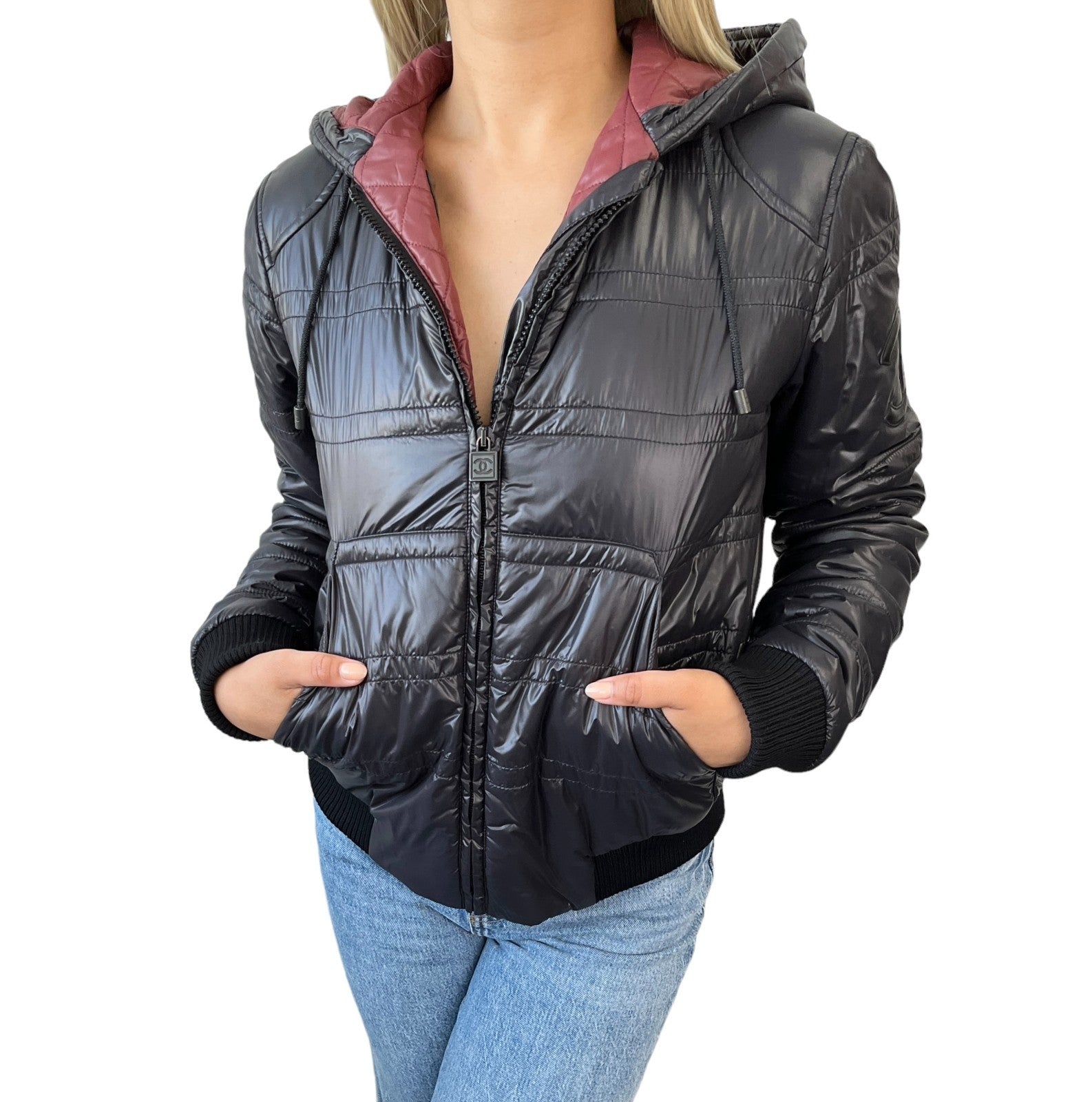CHANEL Sport Vintage P3665 CC Logo Hoodie Zip Up Puffer Jacket #36 Red Black