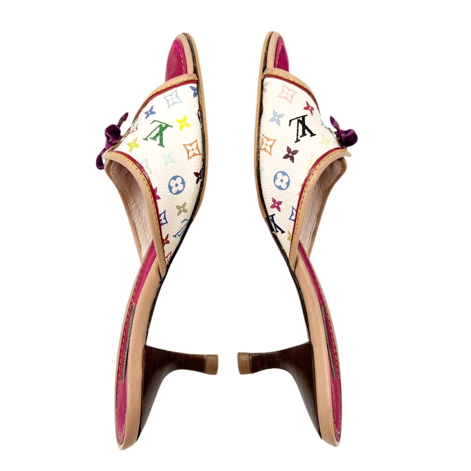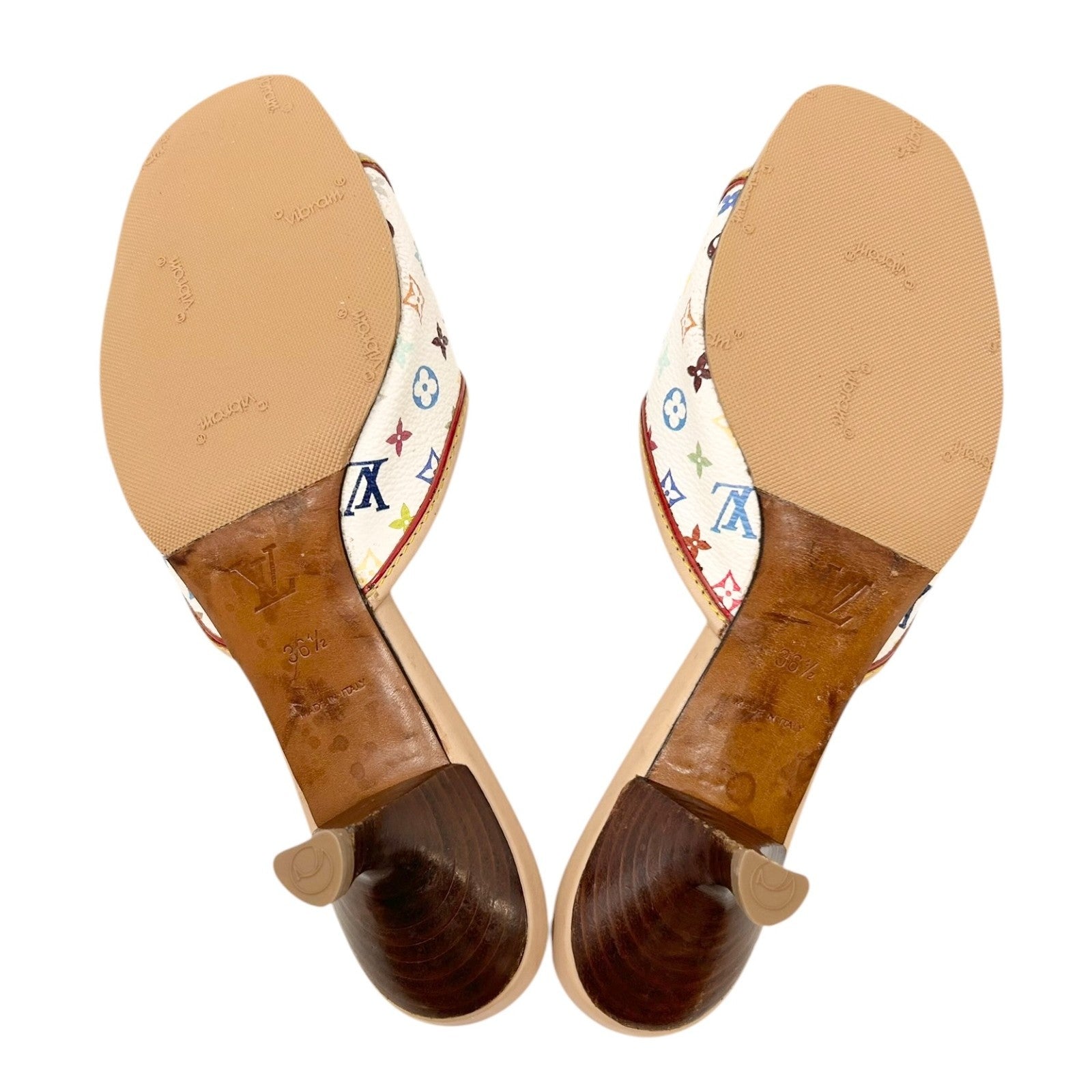 LOUIS VUITTON Vintage Monogram Multicolor Sandals Heels #36.5 White Purple