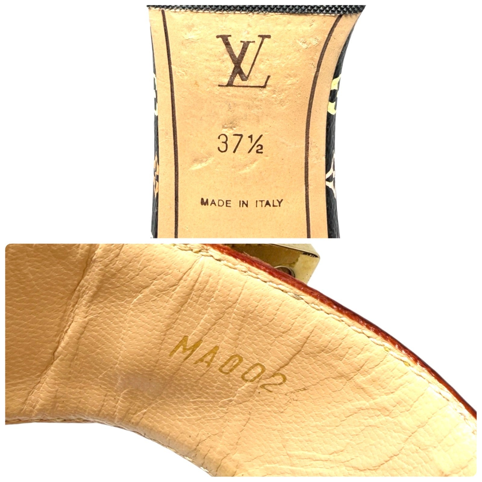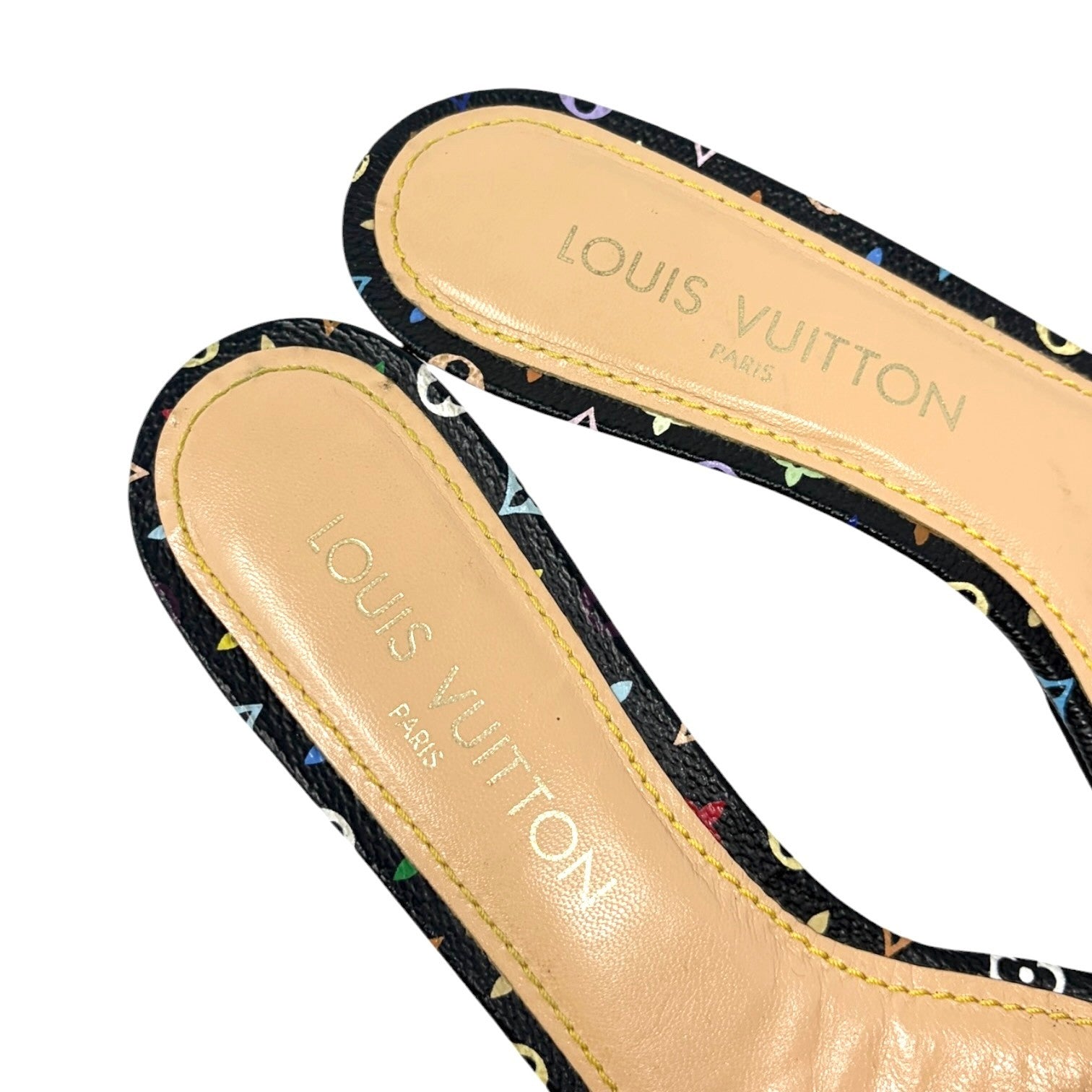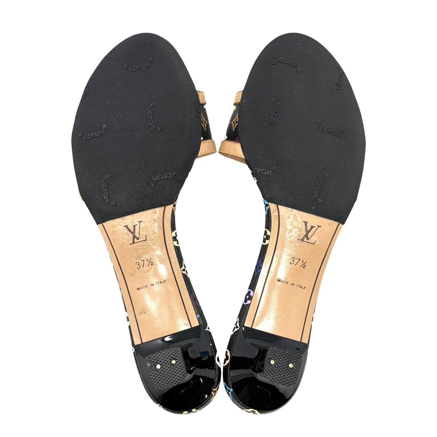 LOUIS VUITTON Vintage Monogram Multicolor Sandals Heels #37.5 Black Beige