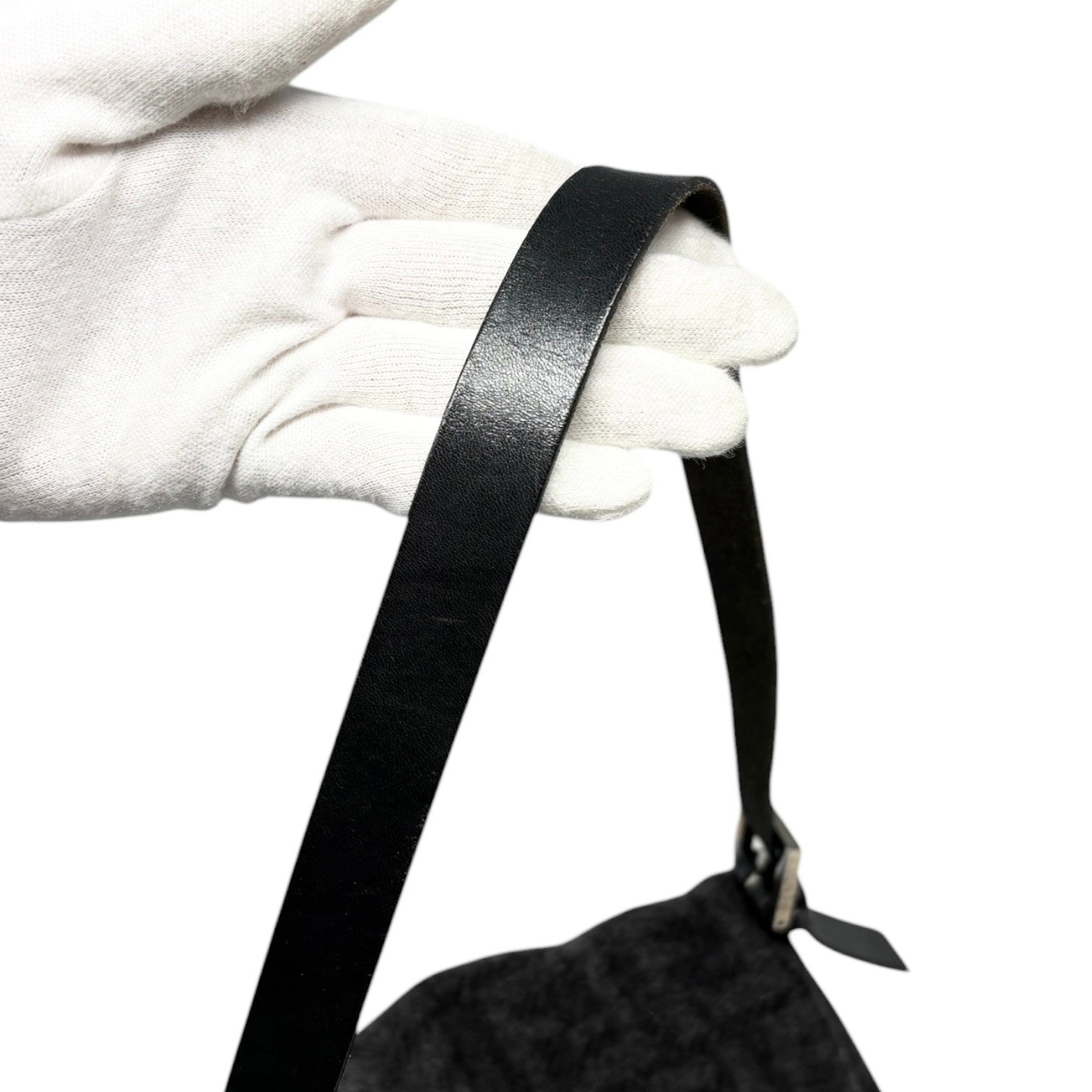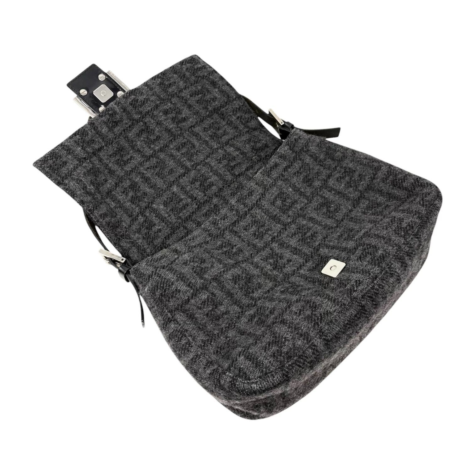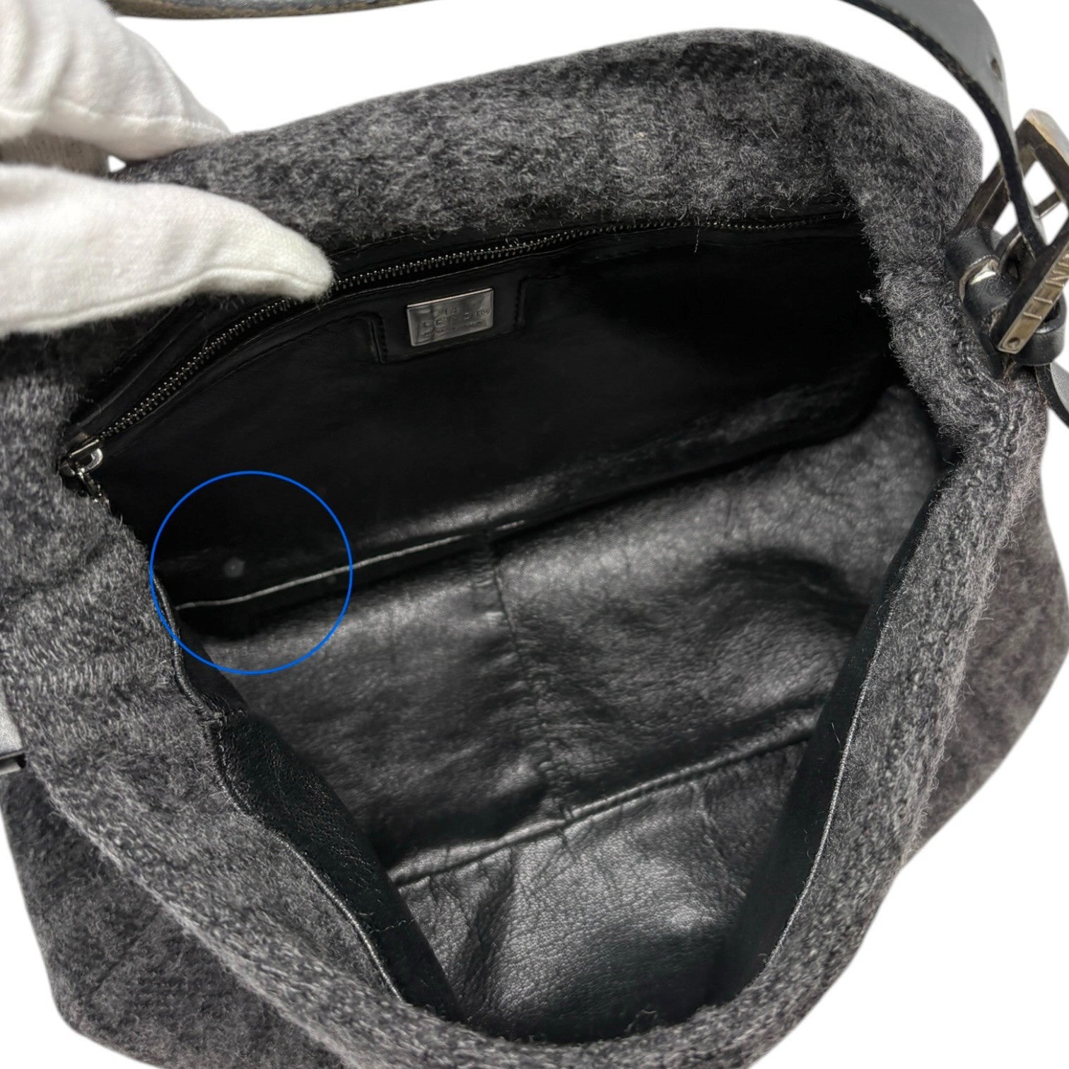 FENDI Vintage Zucca FF Logo Mamma Baguette Shoulder Bag Gray Black Wool