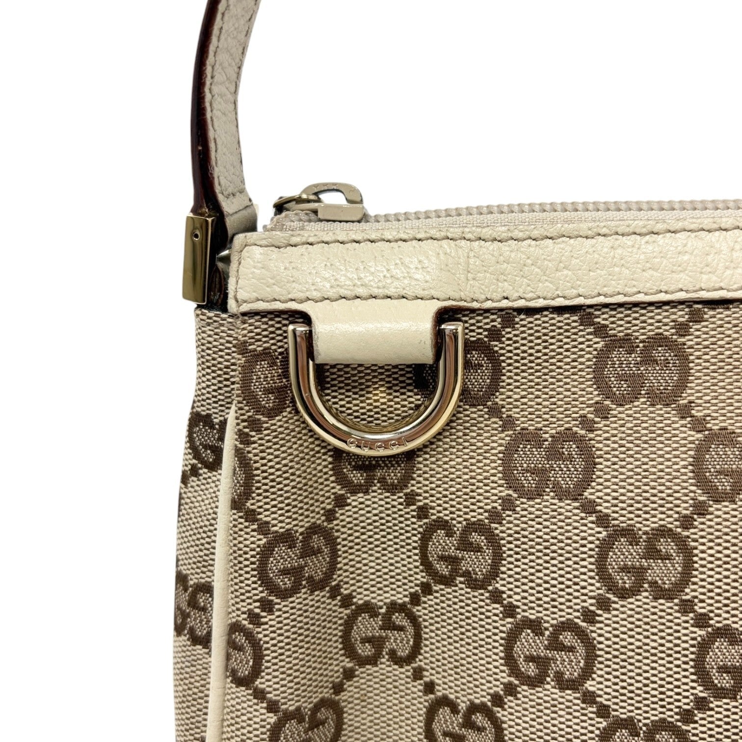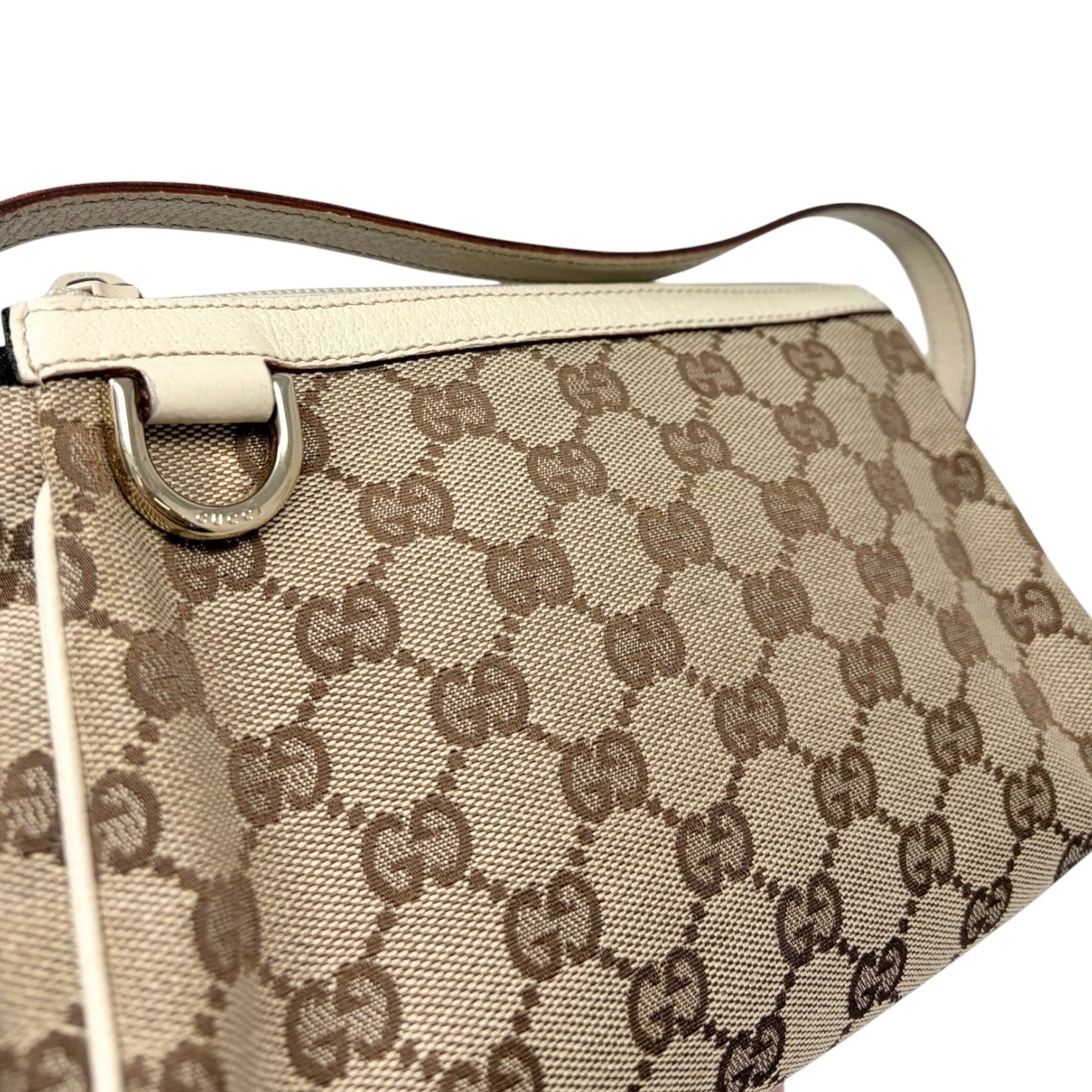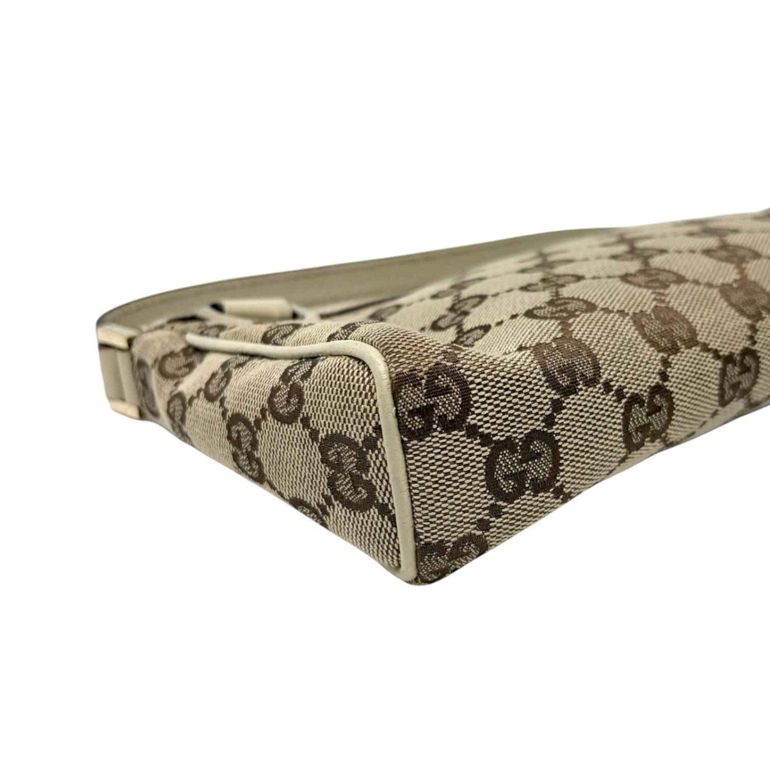 GUCCI Vintage GG Monogram Abbey Logo Mini Shoulder Bag White Brown Canvas