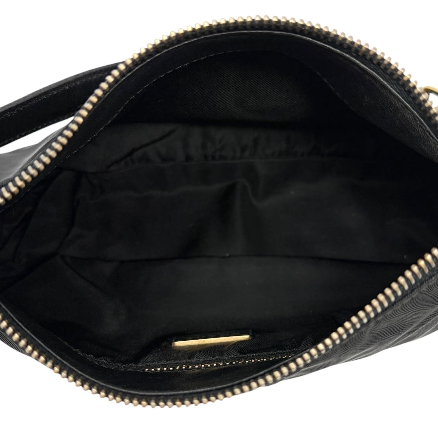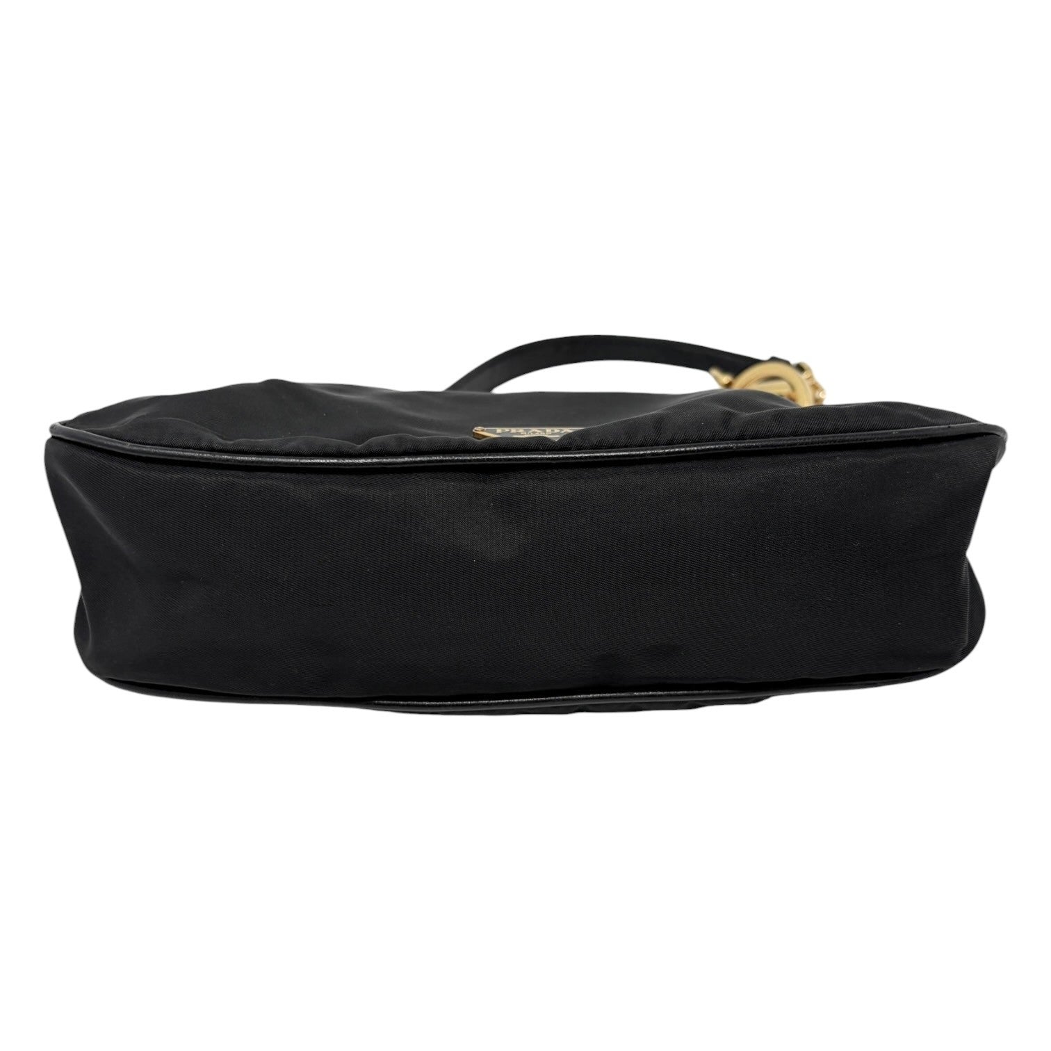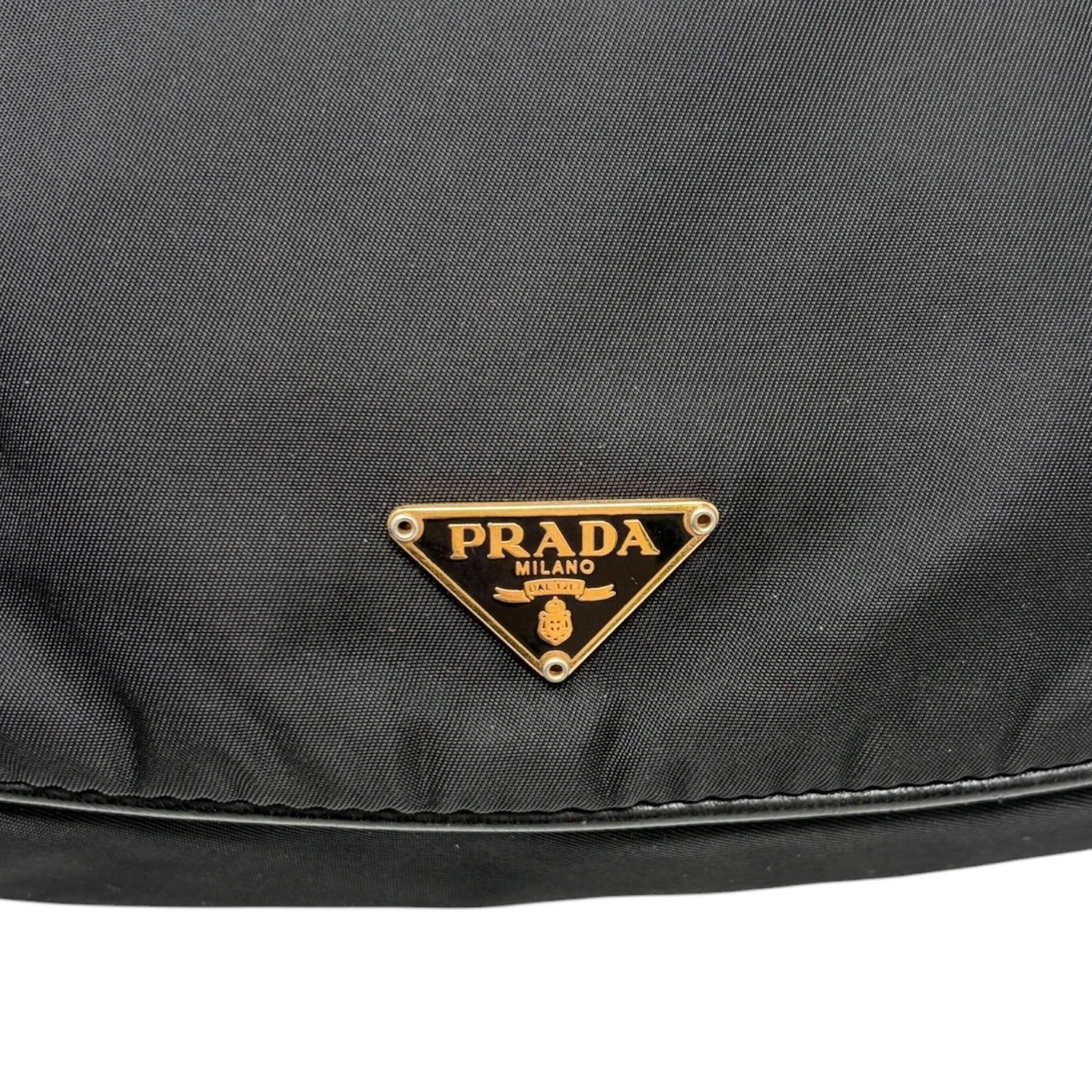 PRADA Vintage Mini Shoulder Nylon Bag Handbag Pochette Black Gold Logo