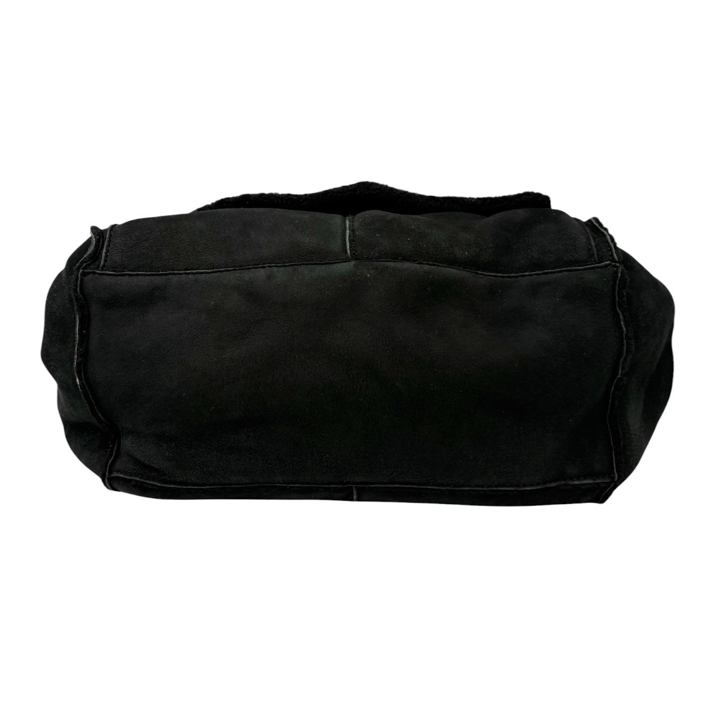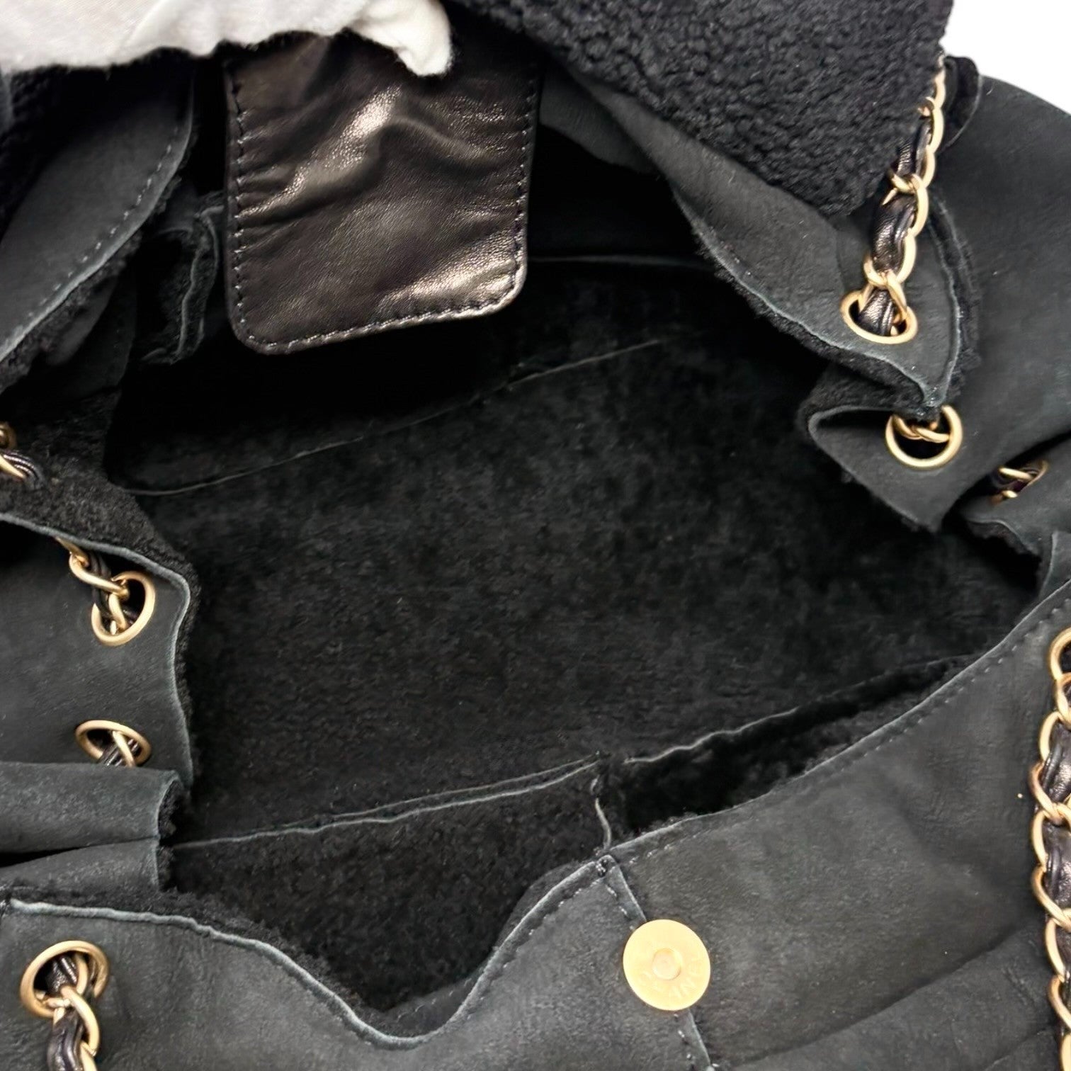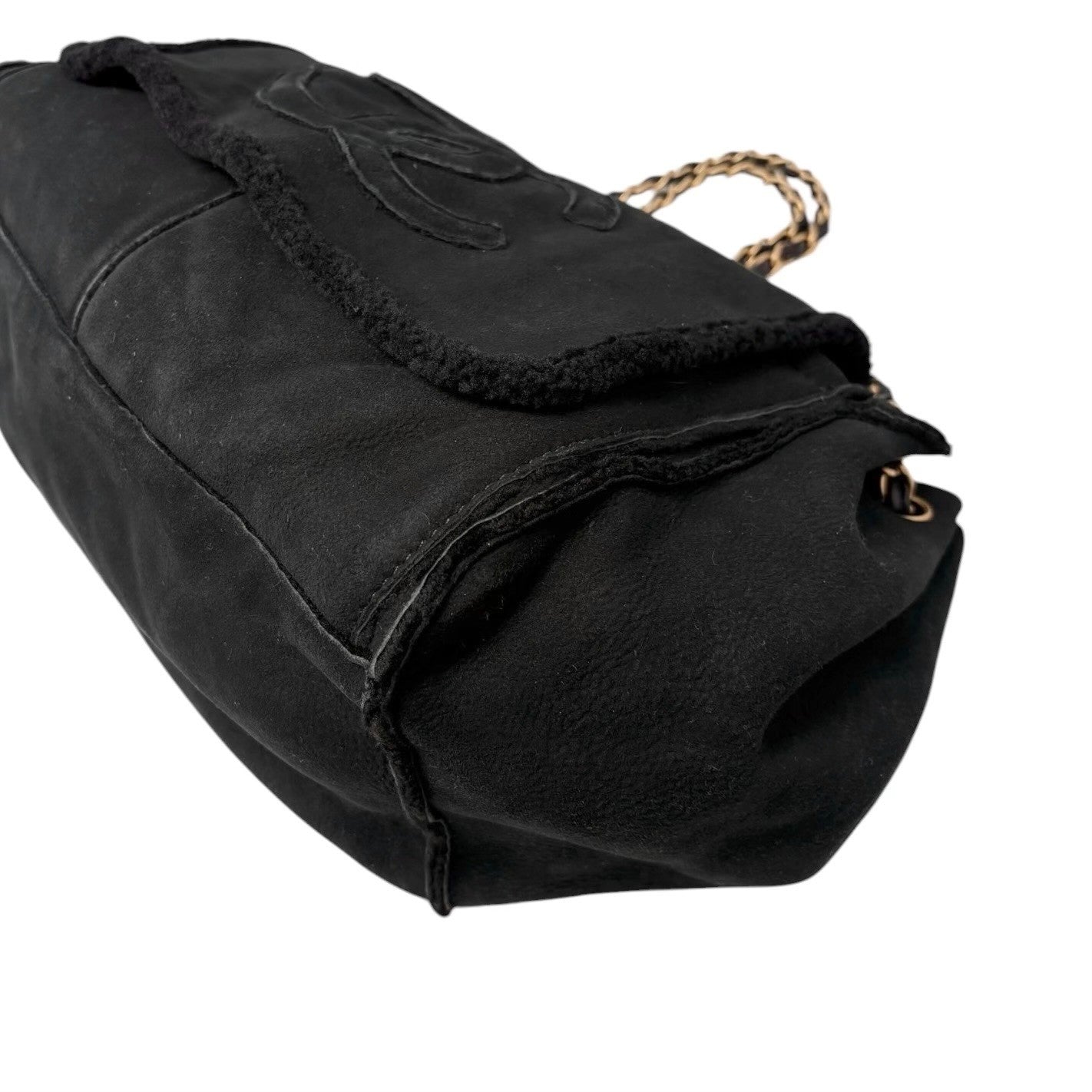 CHANEL Vintage CC Big Logo Shearling Chain Shoulder Bag Black Gold Suede Mouton