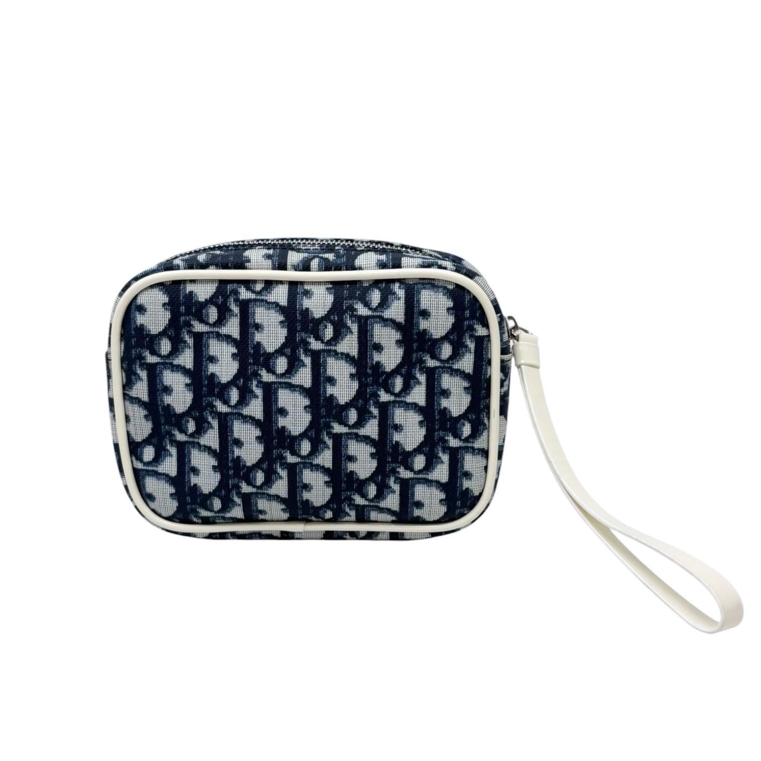 Christian Dior Vintage 2003 Trotter Monogram No.1 Zip Pouch Blue White PVC