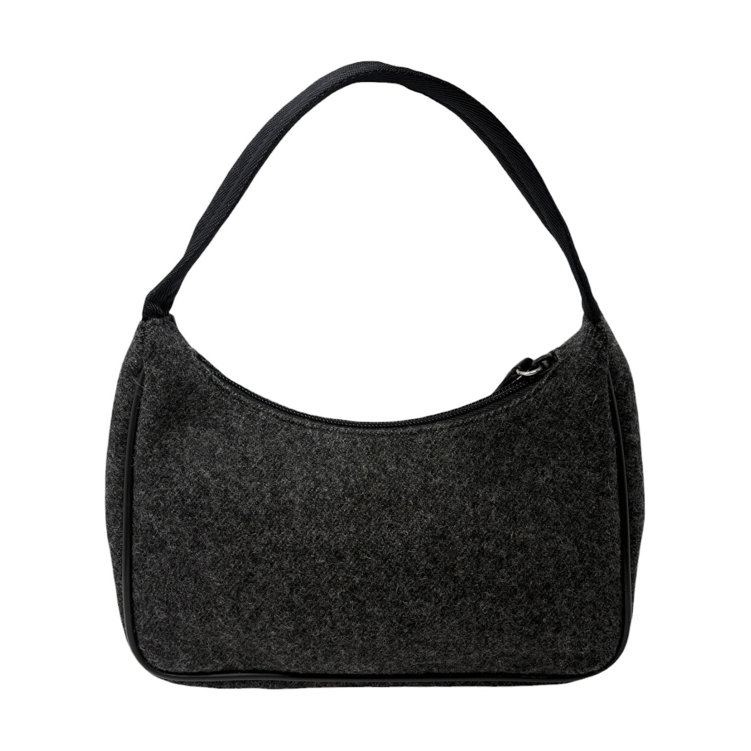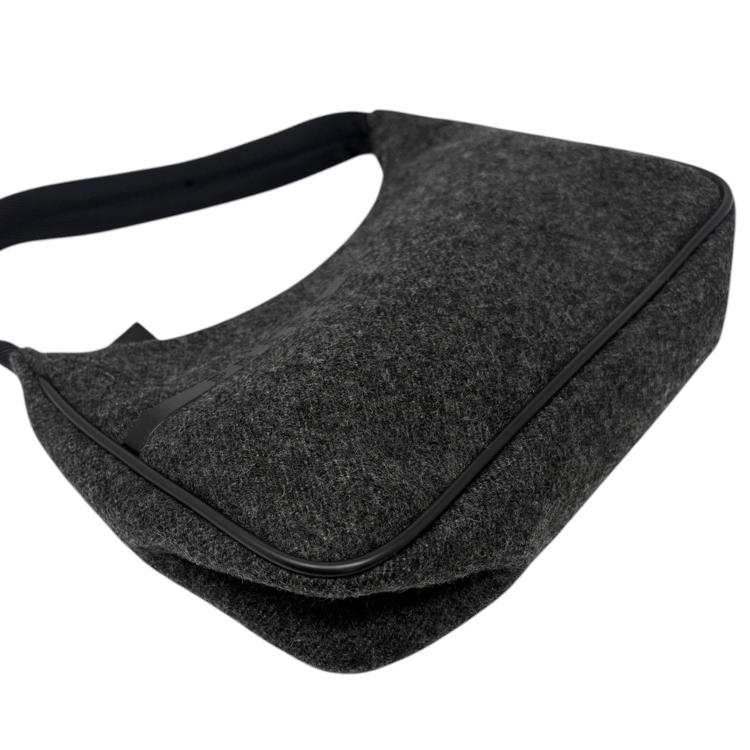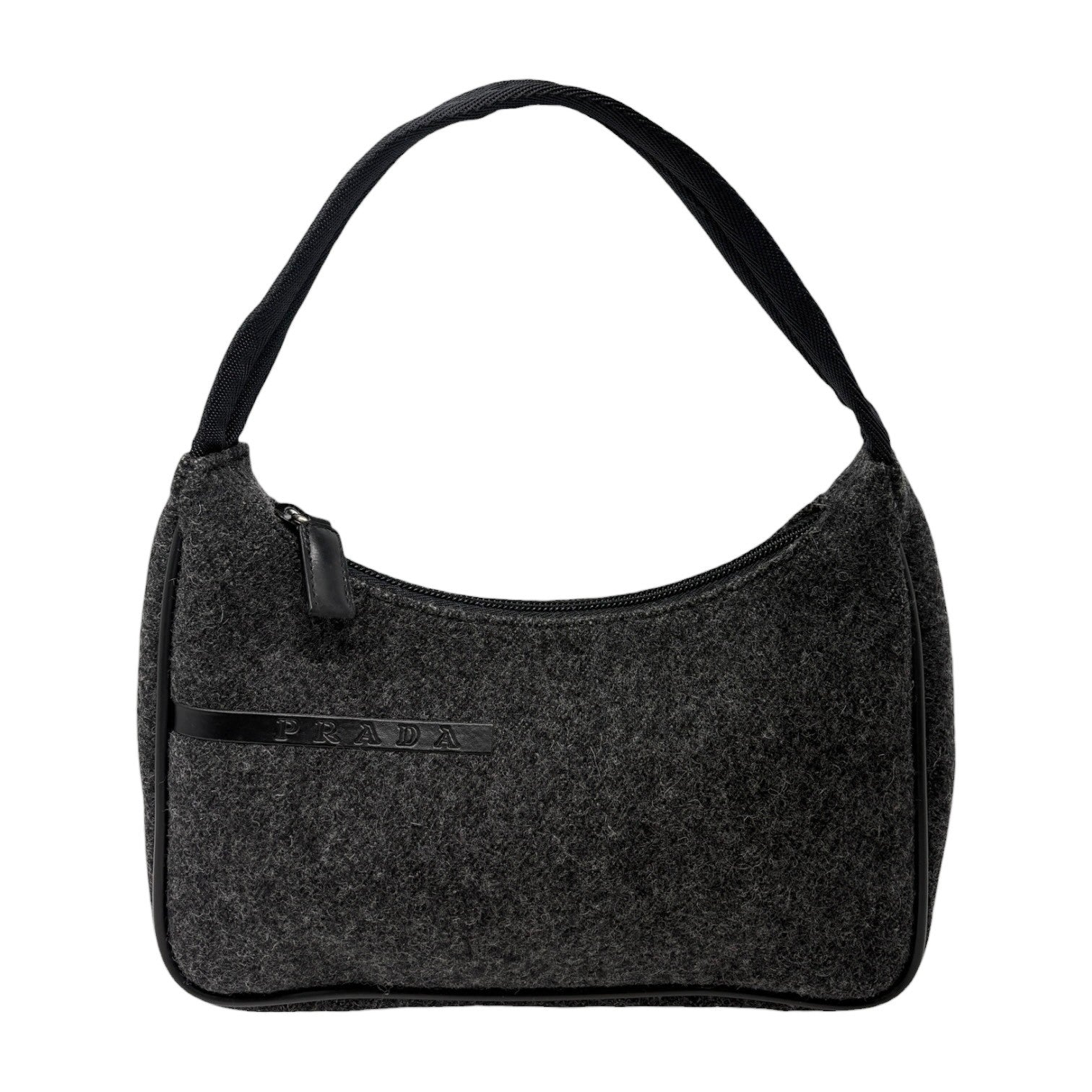PRADA Sport Vintage Logo Wool Mini Bag Pochette Pouch Gray Black Leather