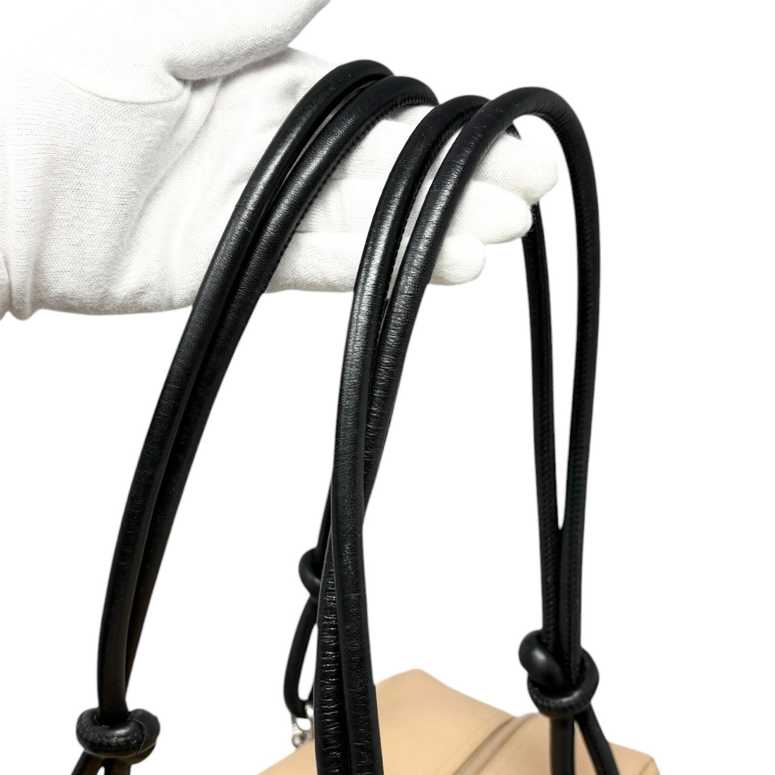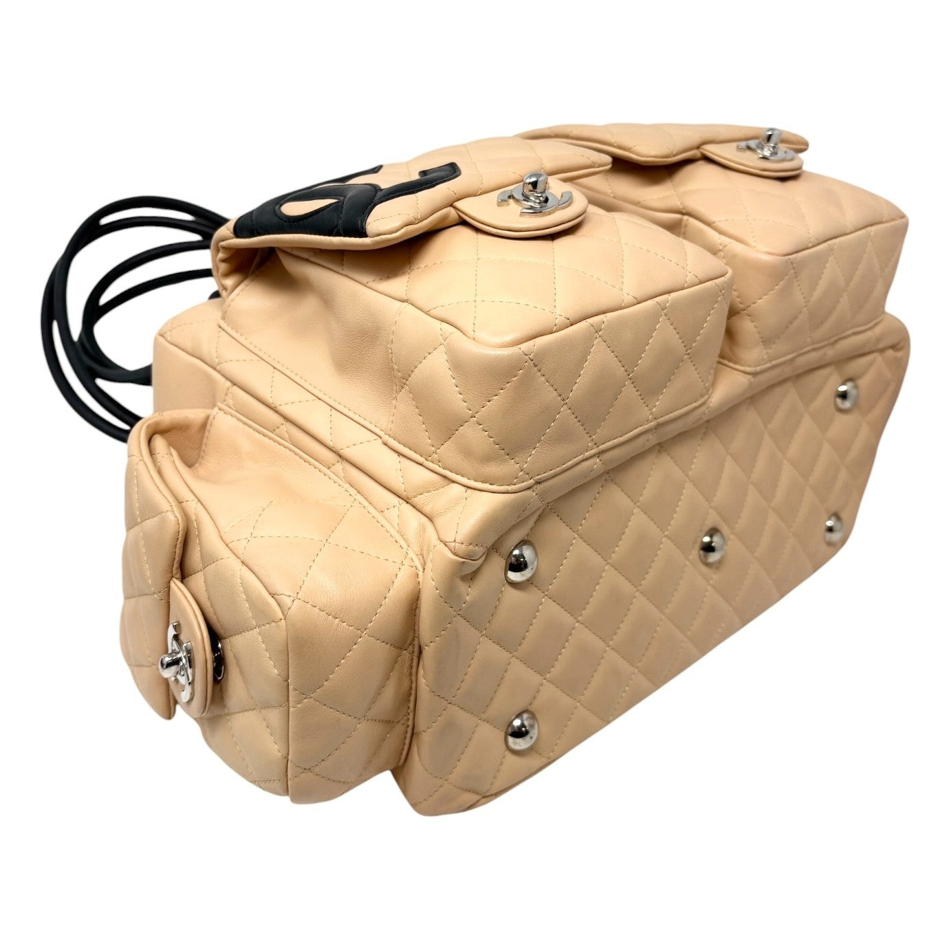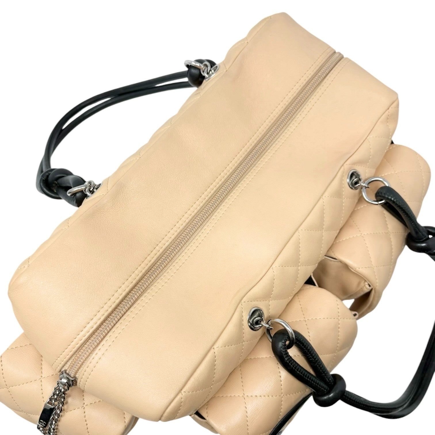CHANEL Vintage Cambon Line CC Logo Quilted Shoulder Bag Beige Black Leather