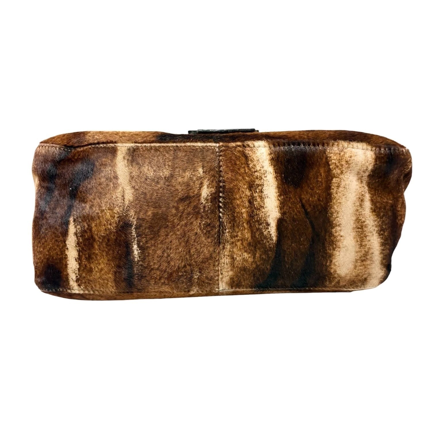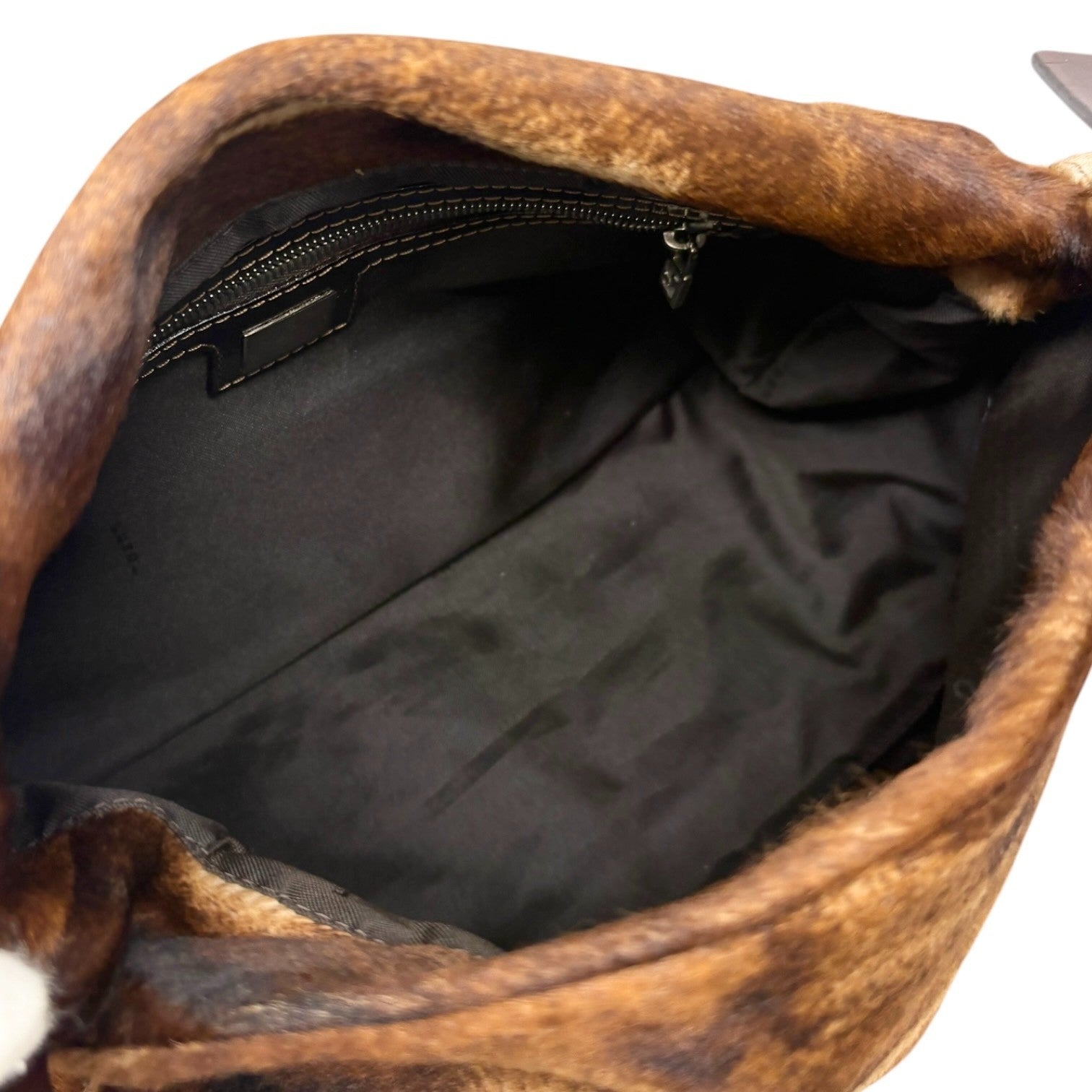 FENDI Vintage FF Logo Mamma Baguette Pony Calf Hair Shoulder Bag Brown Leather